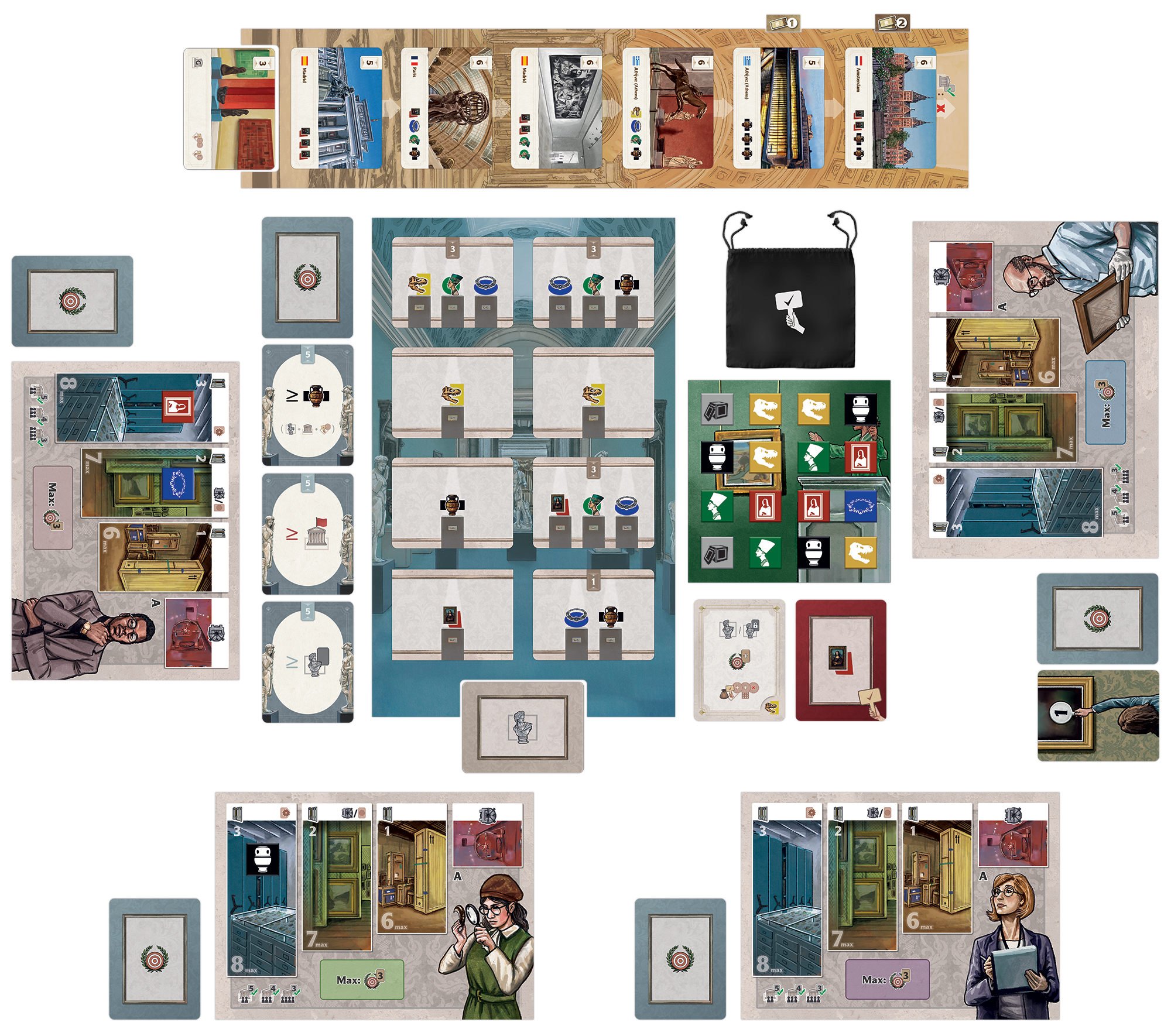 プレイ人数によって決まられた枚数の博物館カードを誰かが集めたらゲーム終了へ向かいます。